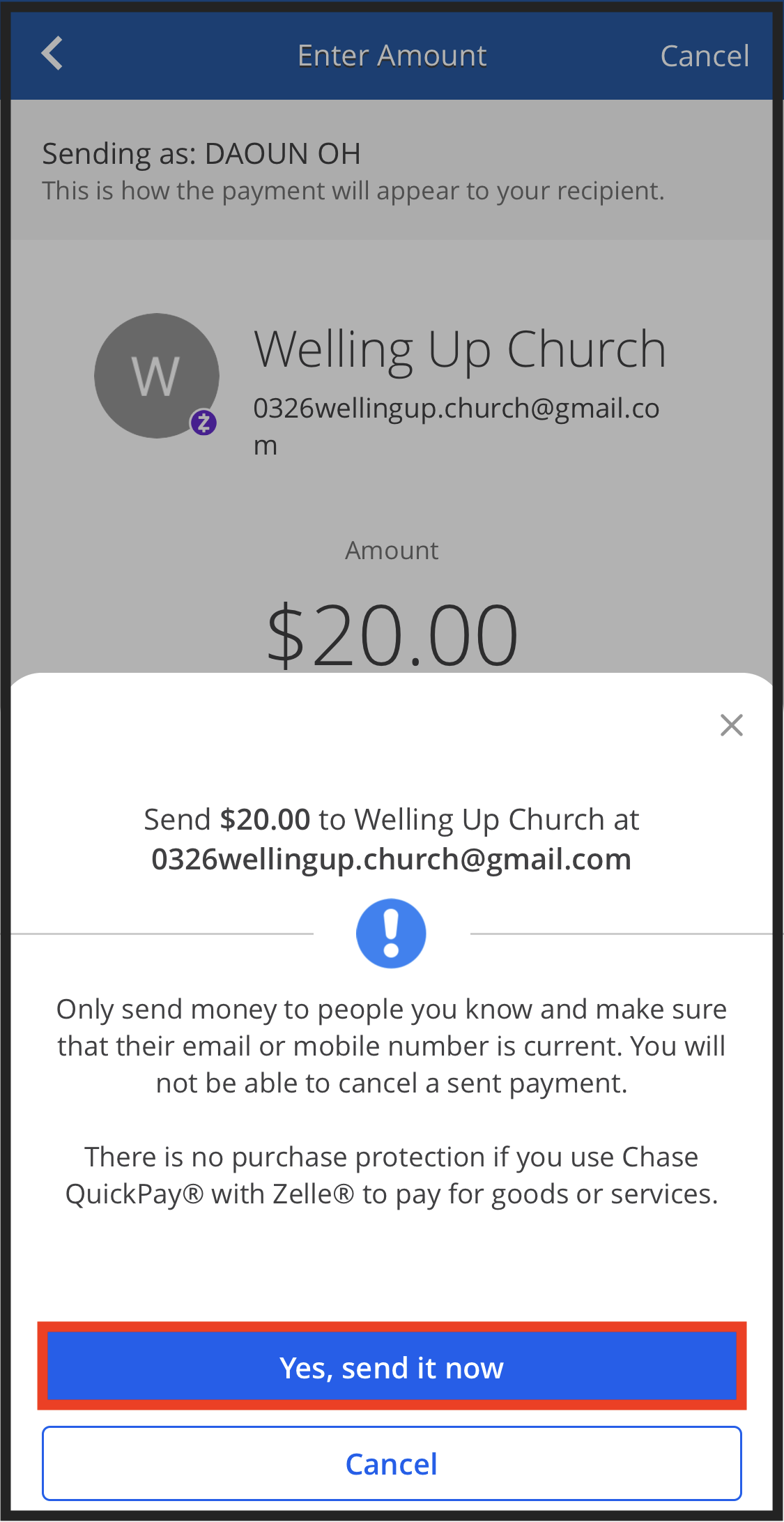 이에 따라 Zelle을 이용하여 온라인으로 헌금하는 방법에 대해 안내를 드립니다. (** 은행마다 방법이 살짝 다를 수 있습니다. 혹시 궁금한 점이 있으신분들은 따로 연락 주세요.)